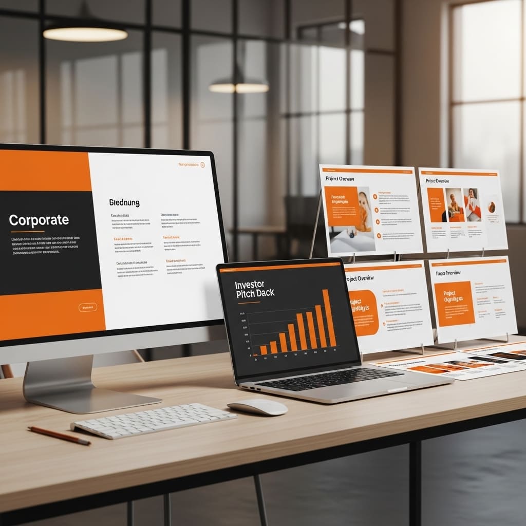 We provide professional presentation design services aimed at showcasing your company or project in a distinctive and engaging way to investors, clients, or senior management. This service includes creating presentations for companies, investors, and tenders, with full integration of your brand identity. Our goal is to transform data and information into a clear and well-organized visual design that is easy to understand and leaves a strong impression, enhancing your company’s ability to persuade the audience and achieve its business objectives.